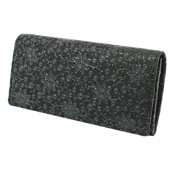 印伝 甲州印伝 印傳屋 上原勇七 財布 長財布 束入れ 2308 クレマチス 黒地×黒漆 鹿革 本革 レザー 花柄 ブランド 冬ギフト 縁起 春財布 贈り物 YM01