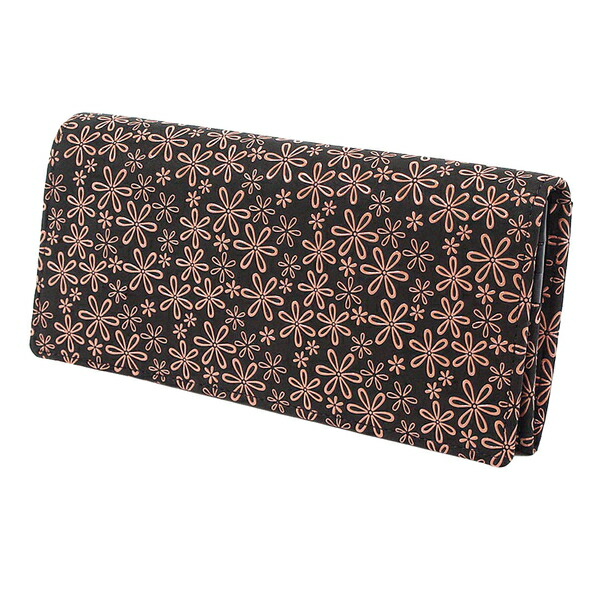 印伝 甲州印伝 印傳屋 上原勇七 財布 長財布 束入れ 2308 雪割草 黒地×ピンク漆 鹿革 本革 レザー 花柄 ブランド 冬ギフト 縁起 春財布 贈り物 YM01