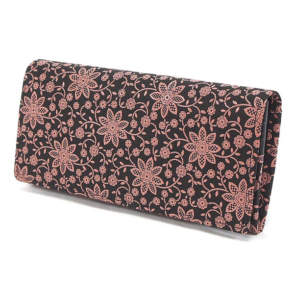 印伝 甲州印伝 印傳屋 上原勇七 財布 長財布 束入れ 2308 クレマチス 黒地×ピンク漆 鹿革 本革 レザー 花柄 ブランド 冬ギフト 縁起 春財布 贈り物 YM01