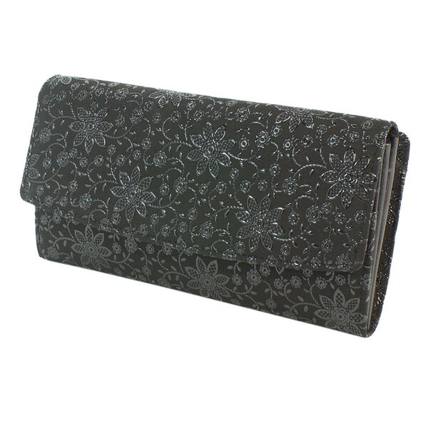 印伝 甲州印伝 印傳屋 上原勇七 財布 長財布 束入れ 2310 クレマチス 黒地×黒漆 鹿革 本革 レザー 花柄 ブランド 冬ギフト 縁起 春財布 贈り物 YM02