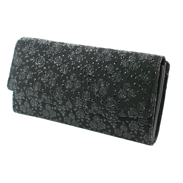 印伝 甲州印伝 印傳屋 上原勇七 財布 長財布 束入れ 2310 ローズ小 黒地×黒漆 鹿革 本革 レザー 花柄 ブランド 冬ギフト 縁起 春財布 贈り物 YM02