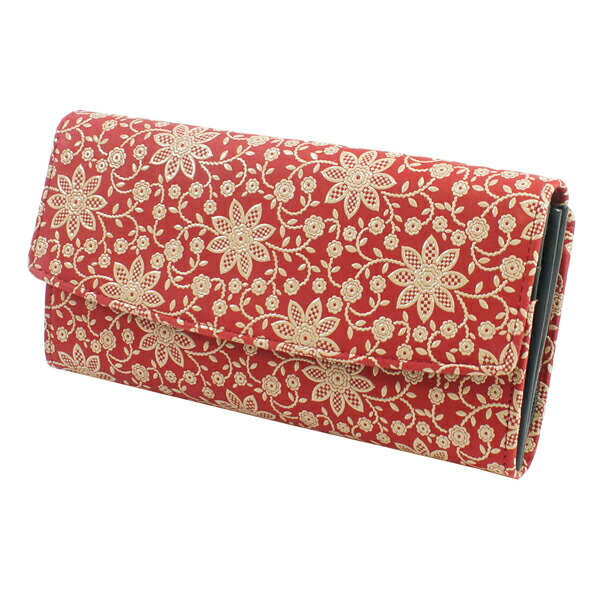 印伝 甲州印伝 印傳屋 上原勇七 財布 長財布 束入れ 2310 クレマチス 赤地×白漆 鹿革 本革 レザー 花柄 ブランド 冬ギフト 縁起 春財布 贈り物 YM02