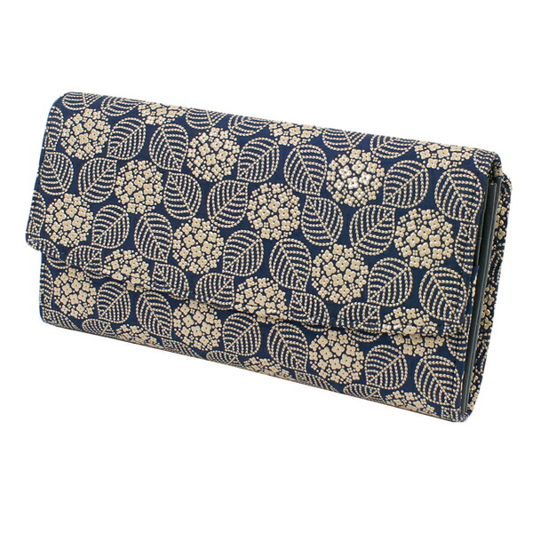 印伝 甲州印伝 印傳屋 上原勇七 財布 長財布 束入れ 2310 あじさい 紫陽花 紺地×白漆 鹿革 本革 レザー 花柄 ブランド 冬ギフト 縁起 春財布 贈り物 YM02