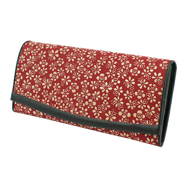 印伝 甲州印伝 印傳屋 上原勇七 財布 長財布 束入れ 2311 梅 赤地×白漆 鹿革 本革 レザー 和柄 ブランド 冬ギフト 縁起 春財布 贈り物 YM01