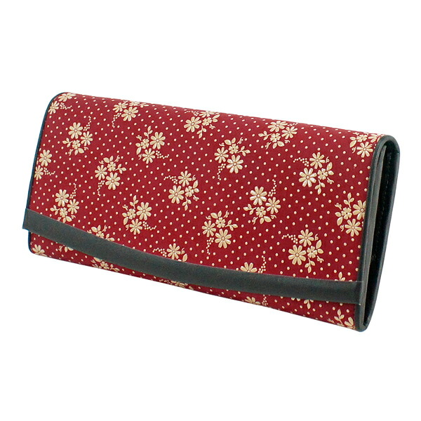 印伝 甲州印伝 印傳屋 上原勇七 財布 長財布 束入れ 2311 コスモス 秋桜 赤地×白漆 鹿革 本革 レザー 花柄 ブランド 冬ギフト 縁起 春財布 贈り物 YM01