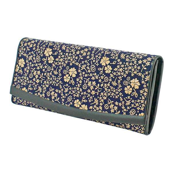 印伝 甲州印伝 印傳屋 上原勇七 財布 長財布 束入れ 2311 アメリカンブルー 紺地×白漆 鹿革 本革 レザー 花柄 ブランド 冬ギフト 縁起 春財布 贈り物 YM01