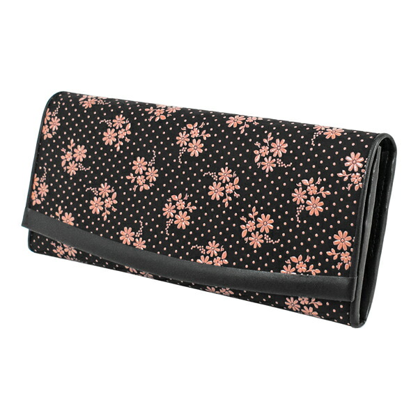 印伝 甲州印伝 印傳屋 上原勇七 財布 長財布 束入れ 2311 コスモス 秋桜 黒地×ピンク漆 鹿革 本革 レザー 花柄 ブランド 冬ギフト 縁起 春財布 贈り物 YM01