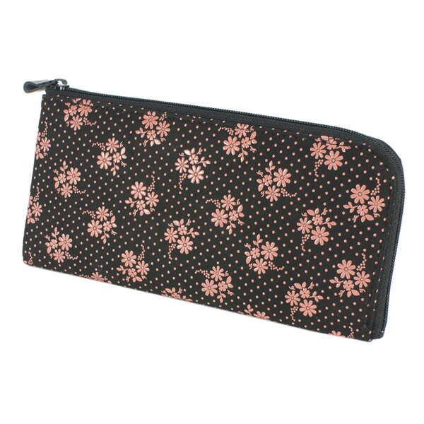 印伝 甲州印伝 印傳屋 上原勇七 財布 長財布 束入れ 2315 コスモス 秋桜 黒地×ピンク漆 鹿革 本革 レザー 花柄 ブランド 冬ギフト 縁起 春財布 贈り物 YM01