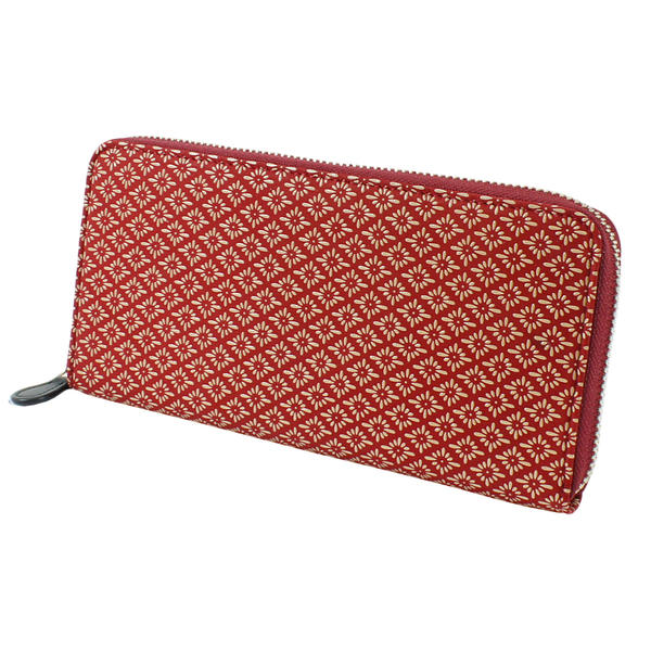 印伝 甲州印伝 印傳屋 上原勇七 財布 長財布 束入れ 2317 菱菊 赤地×白漆 鹿革 本革 レザー 和柄 ブランド 冬物 冬ギフト 福財布 贈り物 YM01