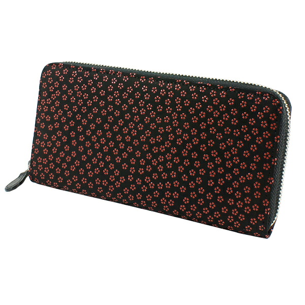 印伝 甲州印伝 印傳屋 上原勇七 財布 長財布 束入れ 2317 小桜 黒地×赤漆 鹿革 本革 レザー 和柄 ブランド 冬物 冬ギフト 福財布 贈り物 YM01