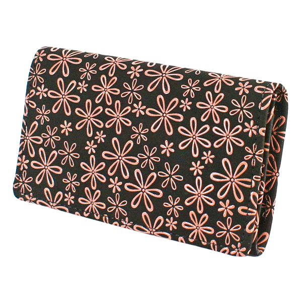 印伝 甲州印伝 印傳屋 上原勇七 名刺入れ 名詞入れ 2501 雪割草 黒地×ピンク漆 鹿革 本革 レザー 花柄 ブランド 冬ギフト バレンタイン 贈り物 YM01
