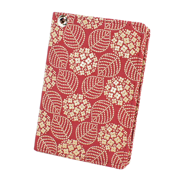 印伝 甲州印伝 印傳屋 上原勇七 パスケース 定期入れ 2527 あじさい 紫陽花 赤地×白漆 鹿革 本革 レザー 花柄 ブランド 冬ギフト バレンタイン 贈り物 YM01