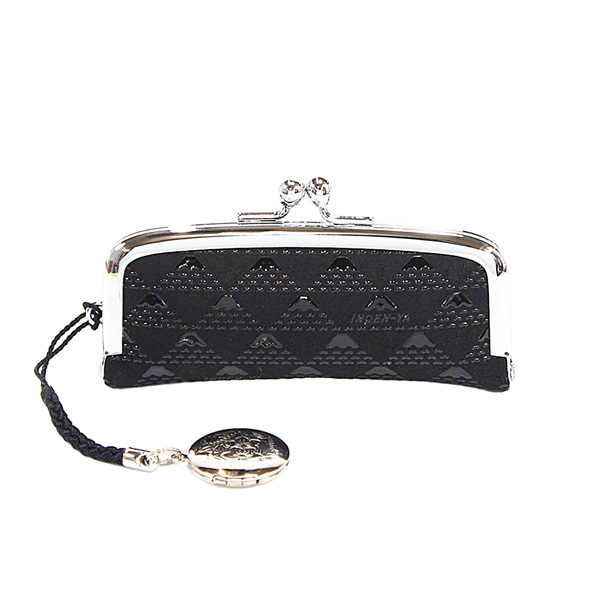 富士山をデザインした印傳屋のオリジナルブランド。柄は厳冬の雄々しい富士を黒地に黒漆で表現し、その高嶺への思いを印伝にしました。