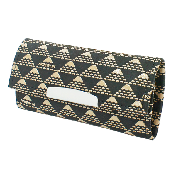 印伝 甲州印伝 印傳屋 上原勇七 キーケース キーホルダー たかね 2807 富士山 黒地×白漆 鹿革 本革 レザー 和柄 ブランド 冬ギフト バレンタイン 贈り物 YM01