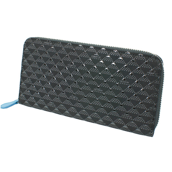 富士山をデザインした印傳屋のオリジナルブランド。柄は厳冬の雄々しい富士を黒地に黒漆で表現し、その高嶺への思いを印伝にしました。
