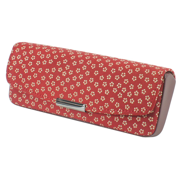 印伝 甲州印伝 印傳屋 上原勇七 メガネケース メガネ入れ 4206 小桜 赤地×白漆 鹿革 本革 レザー 和柄 ブランド 冬ギフト バレンタイン 贈り物 YM01