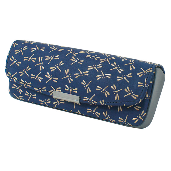 印伝 甲州印伝 印傳屋 上原勇七 メガネケース メガネ入れ 4206 とんぼ 紺地×白漆 鹿革 本革 レザー 和柄 ブランド 冬ギフト バレンタイン 贈り物 YM01