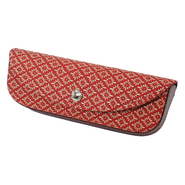 印伝 甲州印伝 印傳屋 上原勇七 メガネケース メガネ入れ 4210 菱菊 赤地×白漆 鹿革 本革 レザー 和柄 ブランド 冬ギフト バレンタイン 贈り物 YM01