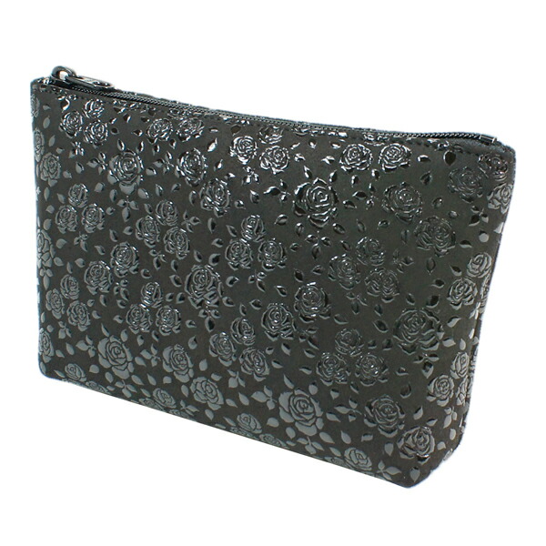 印伝 甲州印伝 印傳屋 上原勇七 ポーチ 化粧ポーチ 4405 ローズ小 黒地×黒漆 鹿革 本革 レザー 花柄 ブランド 冬ギフト バレンタイン 贈り物 YM02