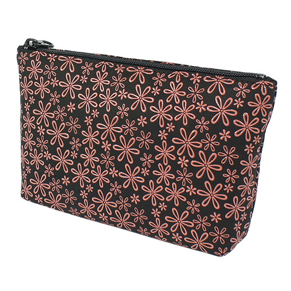印伝 甲州印伝 印傳屋 上原勇七 ポーチ 化粧ポーチ 4405 雪割草 黒地×ピンク漆 鹿革 本革 レザー 花柄 ブランド 冬ギフト バレンタイン 贈り物 YM02