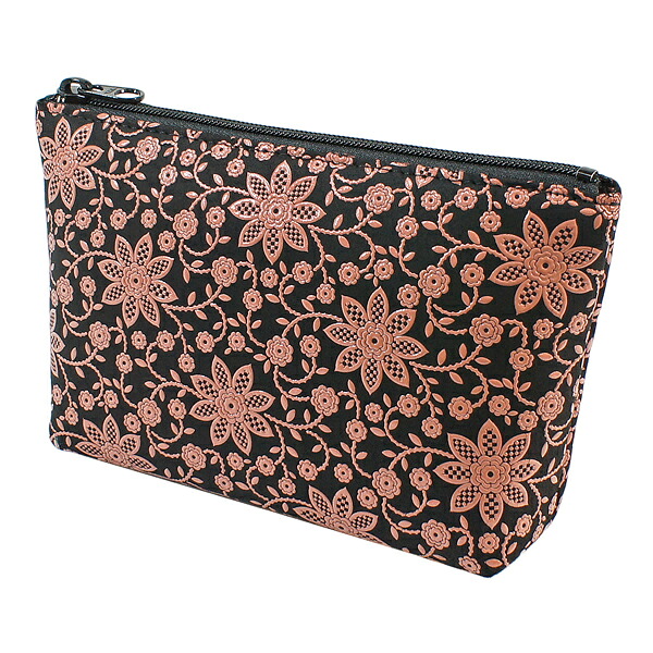 印伝 甲州印伝 印傳屋 上原勇七 ポーチ 化粧ポーチ 4405 クレマチス 黒地×ピンク漆 鹿革 本革 レザー 花柄 ブランド 冬ギフト バレンタイン 贈り物 YM02