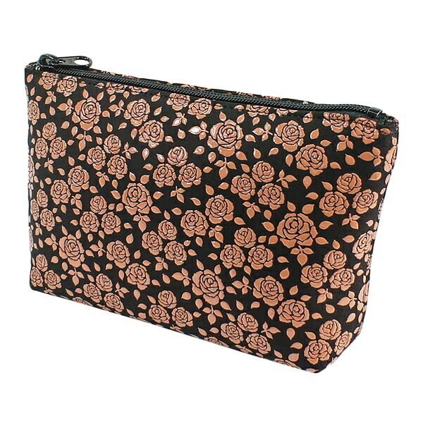 印伝 甲州印伝 印傳屋 上原勇七 ポーチ 化粧ポーチ 4405 ローズ小 黒地×ピンク漆 鹿革 本革 レザー 花柄 ブランド 冬ギフト バレンタイン 贈り物 YM02