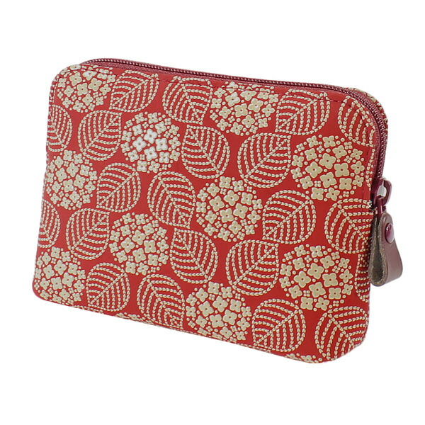 印伝 甲州印伝 印傳屋 上原勇七 小物ポーチ 化粧ポーチ 4409 あじさい 紫陽花 赤地×白漆 鹿革 本革 レザー 花柄 ブランド 冬ギフト バレンタイン 贈り物 YM01