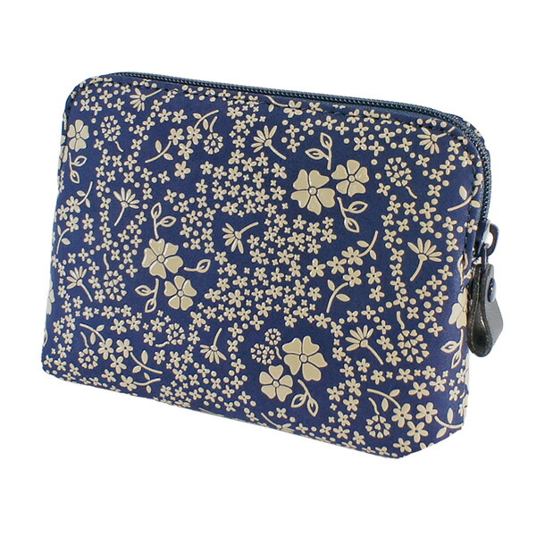 印伝 甲州印伝 印傳屋 上原勇七 小物ポーチ 化粧ポーチ 4409 アメリカンブルー 紺地×白漆 鹿革 本革 レザー 花柄 ブランド 冬ギフト バレンタイン 贈り物 YM01