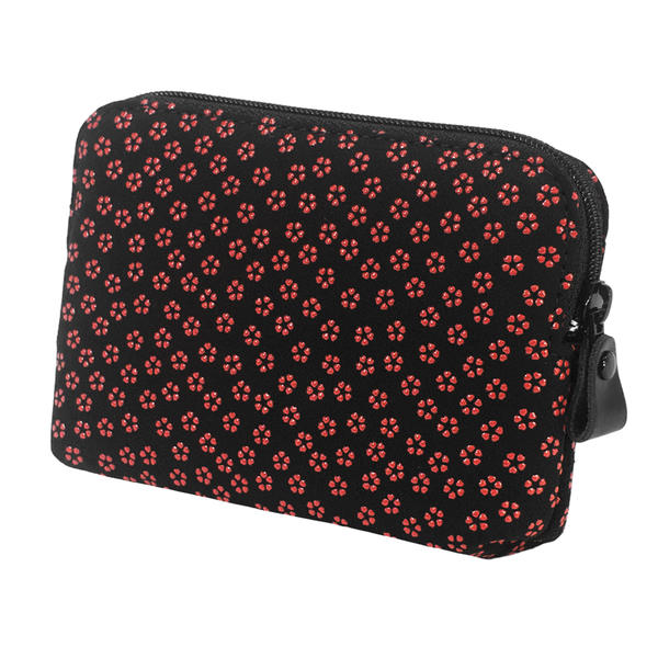 印伝 甲州印伝 印傳屋 上原勇七 小物ポーチ 化粧ポーチ 4409 小桜 黒地×赤漆 鹿革 本革 レザー 和柄 ブランド 冬ギフト バレンタイン 贈り物 YM01