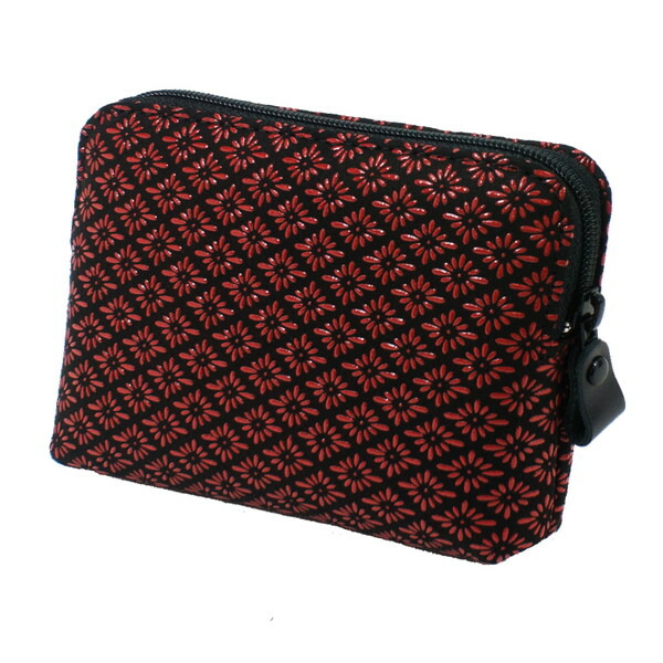 印伝 甲州印伝 印傳屋 上原勇七 小物ポーチ 化粧ポーチ 4409 菱菊 黒地×赤漆 鹿革 本革 レザー 和柄 ブランド 冬物 冬ギフト クリスマス 贈り物 YM01
