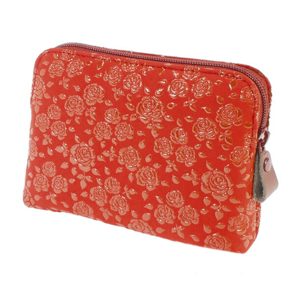 印伝 甲州印伝 印傳屋 上原勇七 小物ポーチ 化粧ポーチ 4409 ローズ小 赤地×赤漆 鹿革 本革 レザー 花柄 ブランド 冬ギフト バレンタイン 贈り物 YM01