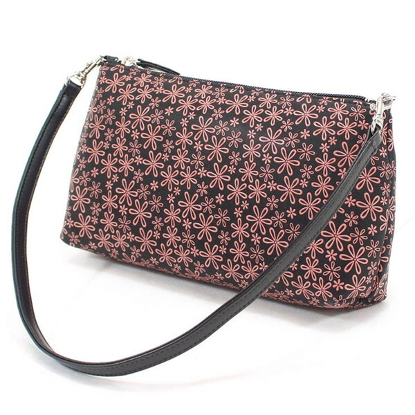 印伝 甲州印伝 印傳屋 上原勇七 化粧ポーチ 手提げ 4411 雪割草 黒地×ピンク漆 鹿革 本革 レザー 花柄 ブランド 冬ギフト バレンタイン 贈り物 YM02