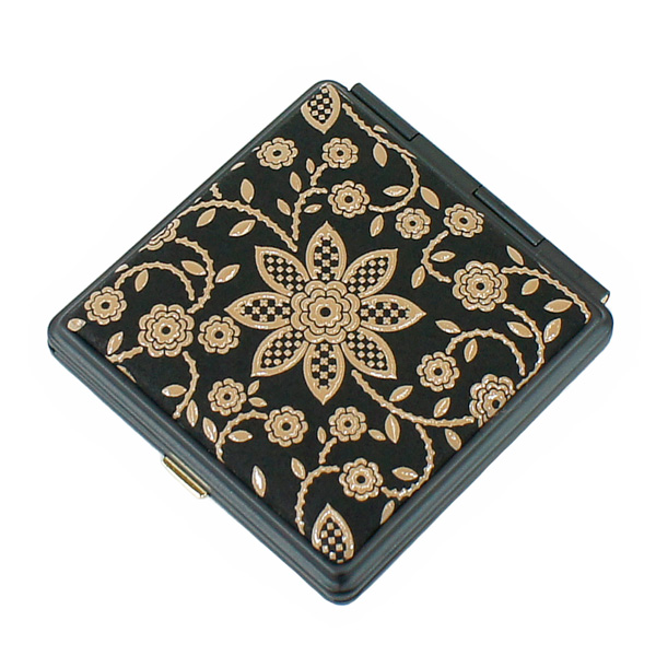 印伝 甲州印伝 印傳屋 上原勇七 角ミラー 鏡 カガミ コンパクト 5015 クレマチス 黒地×白漆 鹿革 本革 レザー 花柄 ブランド 冬ギフト バレンタイン 贈り物 YM02
