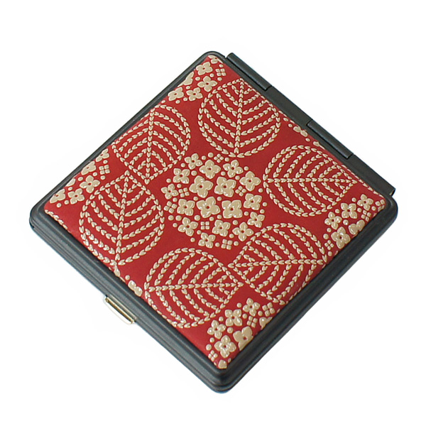 印伝 甲州印伝 印傳屋 上原勇七 角ミラー 鏡 カガミ コンパクト 5015 あじさい 紫陽花 赤地×白漆 鹿革 本革 レザー 花柄 ブランド 冬物 冬ギフト クリスマス 贈り物 YM02