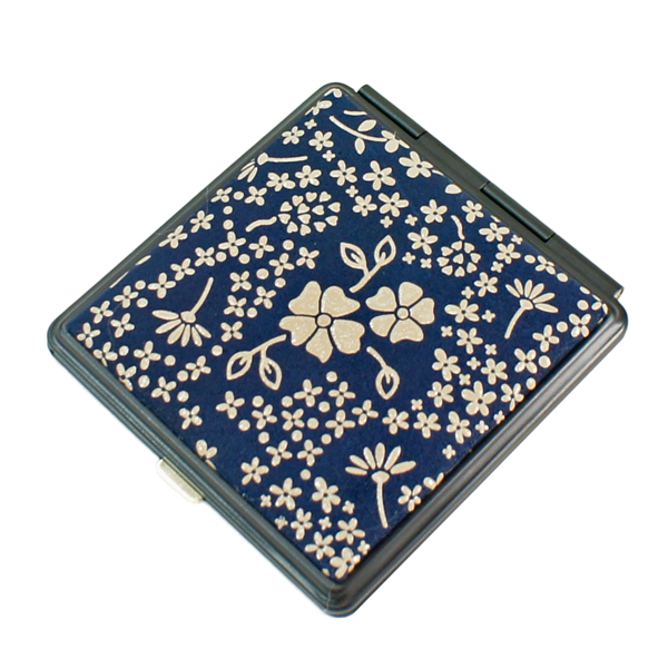 【商品レビュー+5%】印伝 甲州印伝 印傳屋 上原勇七 角ミラー 鏡 カガミ コンパクト 5015 アメリカンブルー 紺地×白漆 鹿革 本革 レザー 花柄 ブランド 伝統工芸 日本製 春ギフト 母の日 贈り物 YM02