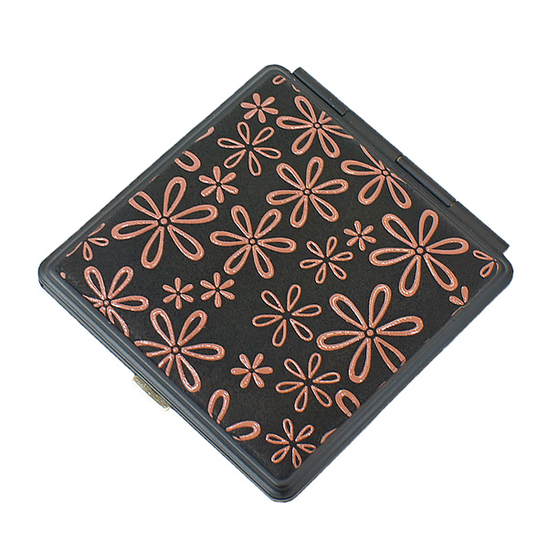 印伝 甲州印伝 印傳屋 上原勇七 角ミラー 鏡 カガミ コンパクト 5015 雪割草 黒地×ピンク漆 鹿革 本革 レザー 花柄 ブランド 冬物 冬ギフト クリスマス 贈り物 YM02
