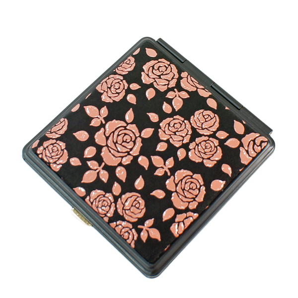 【商品レビュー+5%】印伝 甲州印伝 印傳屋 上原勇七 角ミラー 鏡 カガミ コンパクト 5015 ローズ小 黒地×ピンク漆 鹿革 本革 レザー 花柄 ブランド 伝統工芸 日本製 冬ギフト バレンタイン 贈り物 YM02