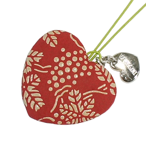 印伝 甲州印伝 印傳屋 上原勇七 チャームストラップ 5023 ぶどう 赤地×白漆 鹿革 本革 レザー ハート かわいい 和柄 ブランド 冬ギフト バレンタイン 贈り物 YM02