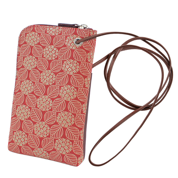 【商品レビュー+5%】印伝 甲州印伝 印傳屋 上原勇七 スマホポシェット スマホケース 5027 あじさい 紫陽花 赤地×白漆 鹿革 本革 レザー 花柄 ブランド 伝統工芸 日本製 春ギフト 母の日 贈り物 YM01
