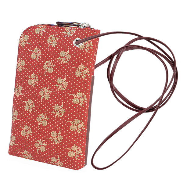 【商品レビュー+5%】印伝 甲州印伝 印傳屋 上原勇七 スマホポシェット スマホケース 5027 コスモス 秋桜 赤地×白漆 鹿革 本革 レザー 花柄 ブランド 伝統工芸 日本製 春ギフト 母の日 贈り物 YM01