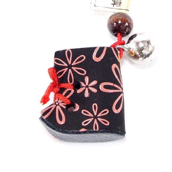 印伝 甲州印伝 印傳屋 上原勇七 ねつけ ストラップ ブーツ 5101 雪割草 黒地×ピンク漆 鹿革 本革 レザー 花柄 ブランド 冬ギフト バレンタイン 贈り物 YM02