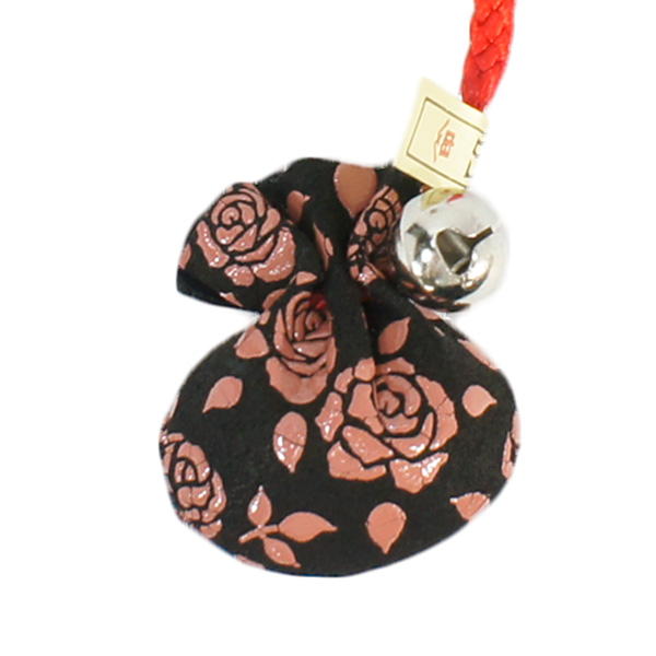 印伝 甲州印伝 印傳屋 上原勇七 ねつけ ストラップ 巾着 5102 ローズ小 黒地×ピンク漆 鹿革 本革 レザー 花柄 ブランド 冬ギフト バレンタイン 贈り物 YM02