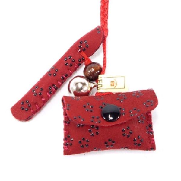 印伝 甲州印伝 印傳屋 上原勇七 ねつけ ストラップ 供紐 5104 小桜 赤地×黒漆 鹿革 本革 レザー 和柄 ブランド 冬ギフト バレンタイン 贈り物 YM02