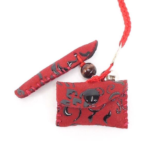 印伝 甲州印伝 印傳屋 上原勇七 ねつけ ストラップ 供紐 5104 花唐草 赤地×黒漆 鹿革 本革 レザー 和柄 ブランド 冬ギフト バレンタイン 贈り物 YM02