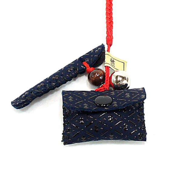【商品レビュー+5%】印伝 甲州印伝 印傳屋 上原勇七 ねつけ ストラップ 供紐 5104 ひょうたん 紺地×黒漆 鹿革 本革 レザー 和柄 ブランド 伝統工芸 日本製 春ギフト ホワイトデー 贈り物 YM02