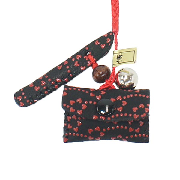 印伝 甲州印伝 印傳屋 上原勇七 ねつけ ストラップ 供紐 5104 小花 黒地×赤漆 鹿革 本革 レザー 和柄 ブランド 冬ギフト バレンタイン 贈り物 YM02