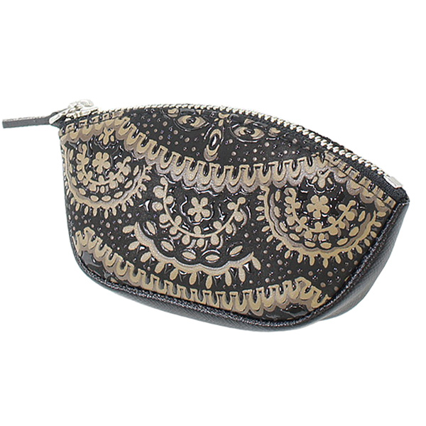 プライデン 繊細で上品なレース柄の印傳屋オリジナルブランド 柄は日本でも昔から広く愛され親しまれてきたレースをモチーフに、黒染めの鹿革にベージュ系の更紗と黒漆で柄を付け豊かな立体感と深みのあるレース柄を実現させました。