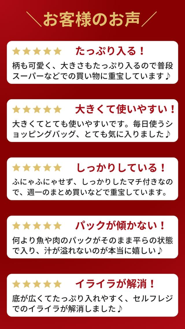 - 以前柄の違う商品を購入して良かった為、母にプレゼントしました。マチモ広くて深さもあり本当に沢山入り丈夫です。大きなパックのお肉なども立てずにそのまま入れることも出来、個人的にもお気に入りです。エコバッ...