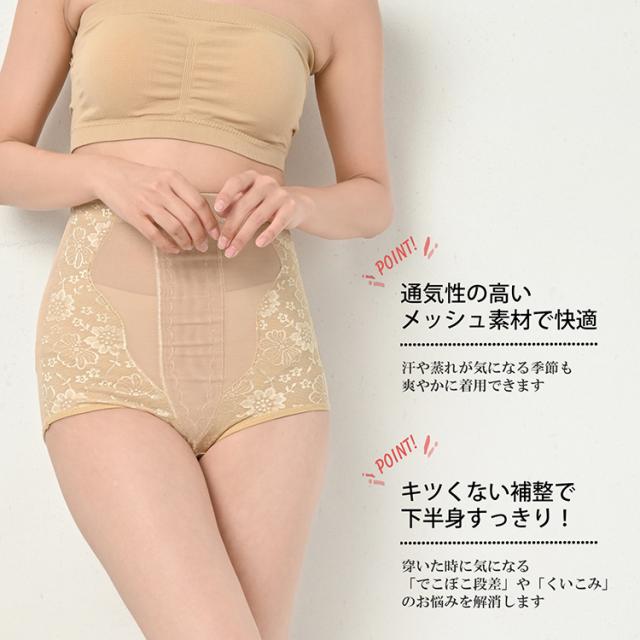 大きいサイズ レディース インナー メール便対応 ガードルショーツ 花柄レース 補正下着 メッシュ ウエストシェイプ 引き締め効果