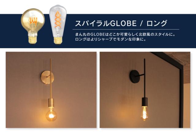 画像で使用のLED電球:E26スパイラルミニGLOBEゴールド